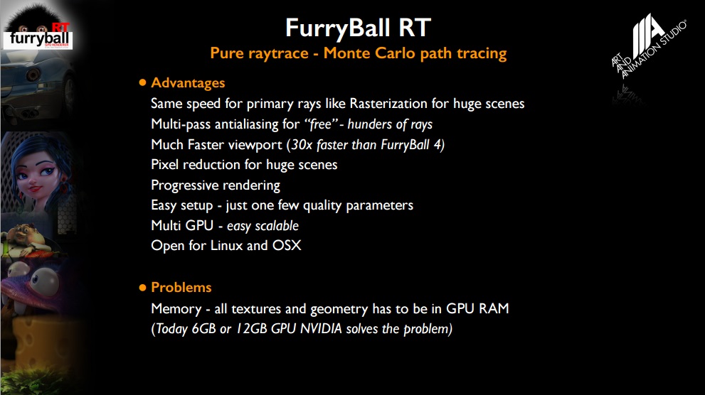 這次在特效與動畫界主軸大部分是在Rendering的GPU化,有OTOY所開發的OctaneRender與VR方面的應用,FurryBall使用OptiX重新打造全Raytracing的GPU Renderer,V-Ray的V-Ray RT在GPU上的應用,還有Redshift所打造Production 品質的GPU Renderer, Nvidia也推出了MDL的Handbook。