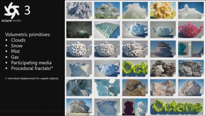 這次Octane Render發表了GPU Render應用在VR的應用技術,新版的Octane Render3也支援了OSL(Open Shading Language),Volume Primitive,還有OTOY也打造了自家的Octane Render Cloud