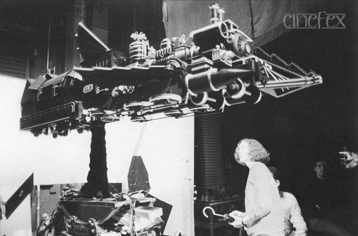 在第三集出現的火車時光機器,ILM使用了由當時的攝影助理Kate O’Neill程式化的電腦控制微縮模型的移動,共使用了兩組motion-control的系統,同時來做24個機構的控制。