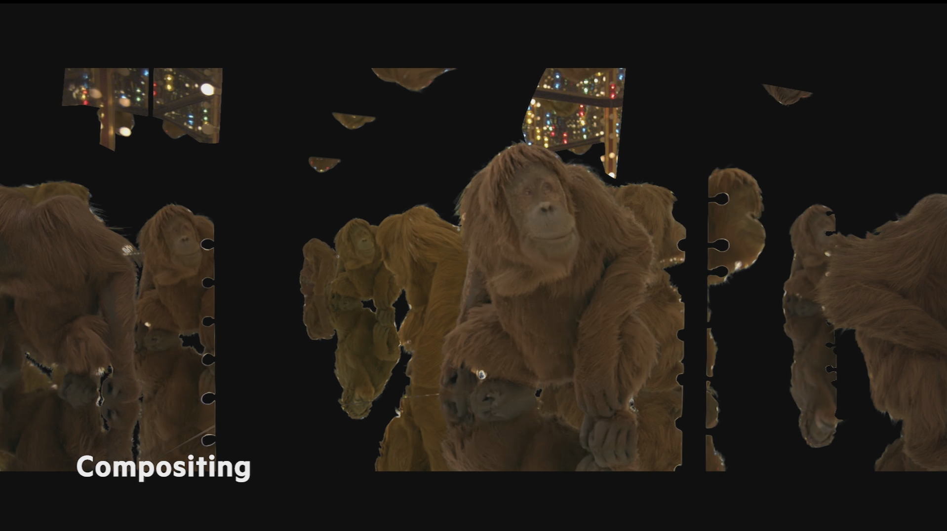 之前The Mill幫SSE製作了Seeing energy through fresh eyes的廣告,裡面的紅毛猩猩(MAYA)CG角色之前是使用Softimage所製作,在新的廣告Pier中,製作團隊將整個部分VFX製作流程完全改到Maya中,並完全重製了該CG角色,並開發了該角色所使用的肌肉系統,該廣告的挑戰在於角色與環境有更多的互動,為了提供更真實的毛髮運動,該團隊開發了新的可以模擬複雜風向的毛髮系統。為了紅毛猩猩性格的表現更真實,特效團隊也針對表情(Facial)部分,加上了Tension與Compression Map所擠壓的驅動表情,讓角色的表情可以更加生動。